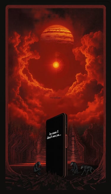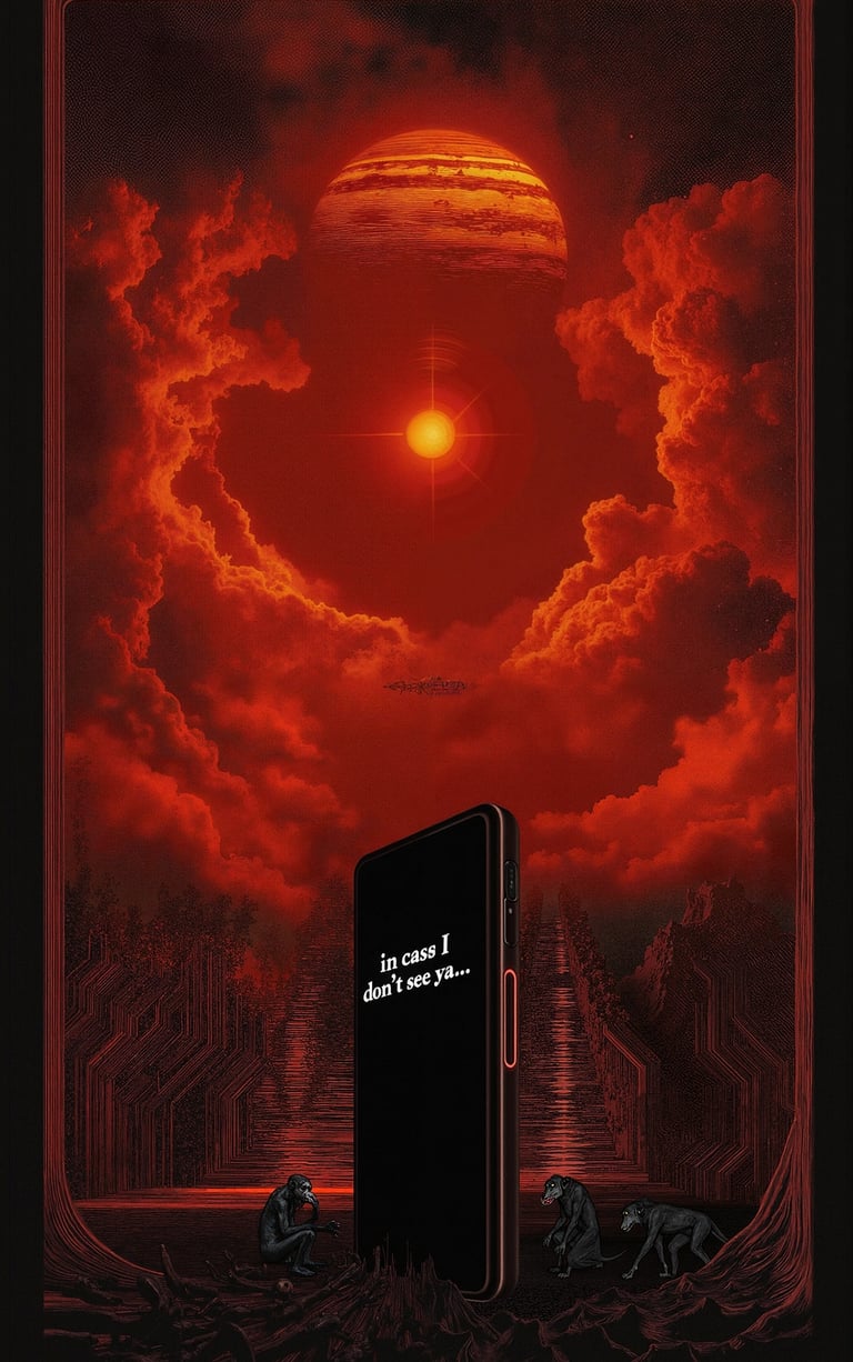 When those apes reached up to touch that unusual surface, if they had been met with the face of fearful curiosity from the other side, rather than the echo eating mat black of the monolilith that marked us all from that captors prison at the base of our brains. Where would we be, who would we be? Was this in fact the beginning of our demise.