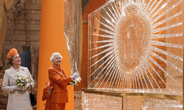 Kubrick's original Monolith was a transparent perspex block measuring approximately 328 cm by 175 cm and about 20 cm deep with a weight around 2 tons. Kubrick rejected the original Monolith in favour of the opaque wooden structure we all know, painted in a graphite mixed black paint, giving it an extremely mono-smooth sheen. The original transparent Monolith was purchased by Arthur Fleischmann, a Pioneer of acrylic sculpting. At that time it was the largest block of acrylic ever cast, it was procured for Arthur to carve the "Crystal Crown" for the Queen in 1977, the same year 3 iii Atlas sent out its WOW signal "6EQUJ5".