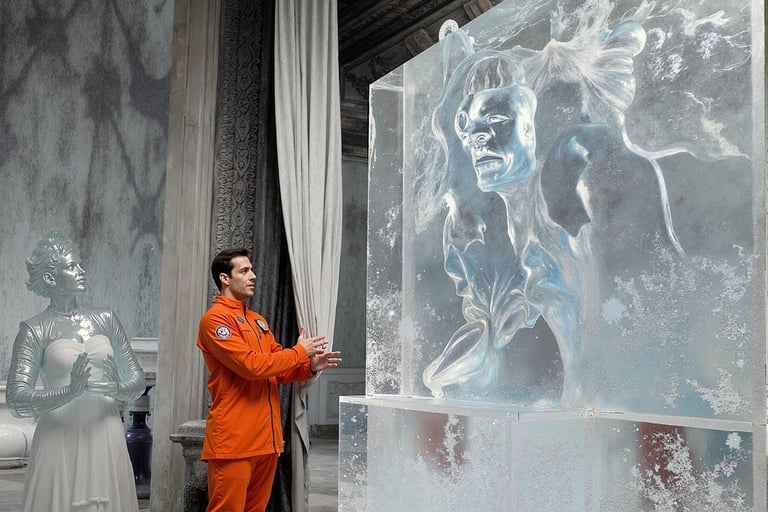 Here we are some 24 years on from 2001 where we brittlely bask in the fractured star light of recent phallic space adventures, where the semen are women dressed in blue, pushing up daisies with synthetic hands, staring at cameras with duplicated dead eyes as the butter flies. Stars of the hollow wood, naughts and crosses, sacrificed in a forbidden narrative crucified with hands and lips tied.